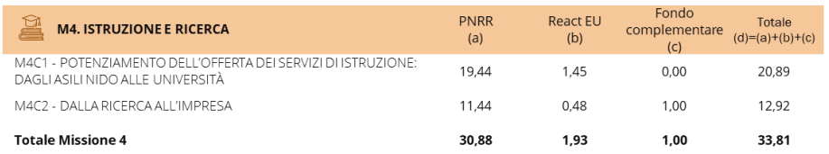 Fonte: ”Piano nazionale di ripresa e resilienza. #NextGenerationItalia”, pag 23-24