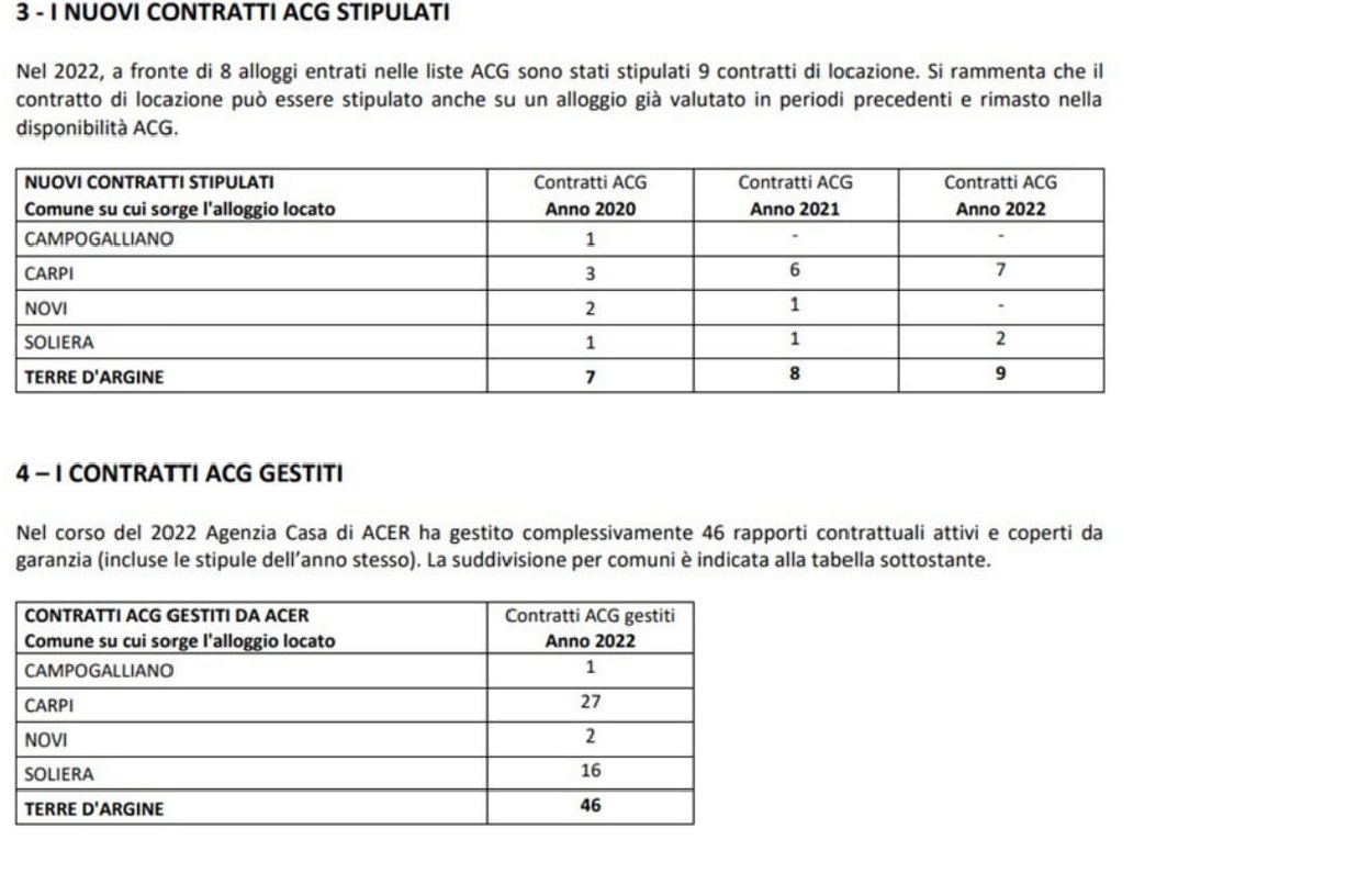" L'aumento così forte di domande di contributo – commenta il Presidente dell’Unione delle Terre d’Argine, Alberto Bellelli -, per sostenere l'affitto, testimonia la difficoltà in cui si trovano le famiglie in seguito agli aumenti di costo dovuti alla crisi energetica e al difficile quadro economico scaturito dalla situazione internazionale. Sappiamo che spesso le famiglie in affitto sono quelle più fragili e risulta incomprensibile   che proprio in un momento come questo il Governo abbia azzerato nella legge di bilancio i contributi su affitto e morosità incolpevole. La mancanza di ulteriori fondi infatti renderà impossibile accontentare tutte le richieste che rimangono senza finanziamento. Questa scelta accompagnata alla mancanza di politiche di sostegno all'abitazione sostenibile mettono in una situazione di difficoltà anche gli enti locali che devono gestire le  tensioni nel proprio territorio. Per sostenere la domanda di affitti a canone calmierato l'Unione è impegnata a realizzare le misure previste dal Patto per la casa Regionale che prevedono una serie di agevolazioni e garanzie per chi è disposto a affittare a canone concordato".